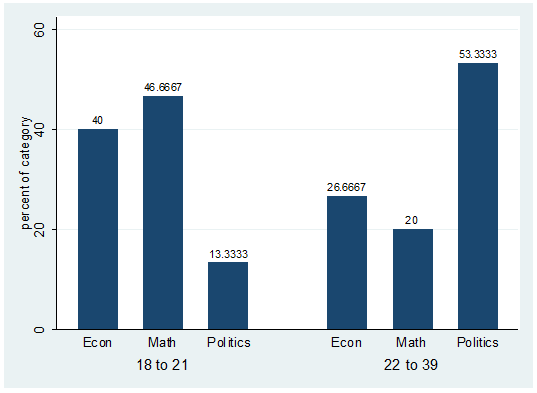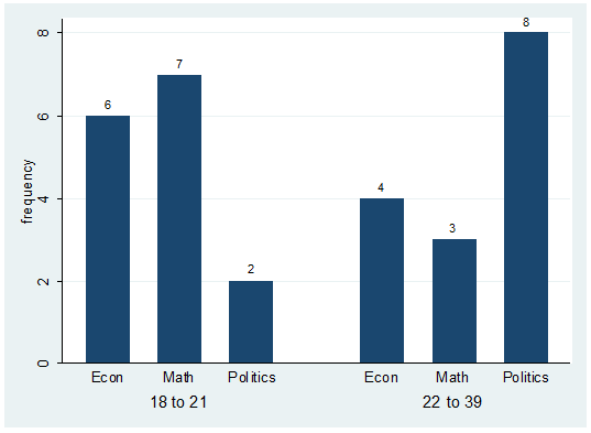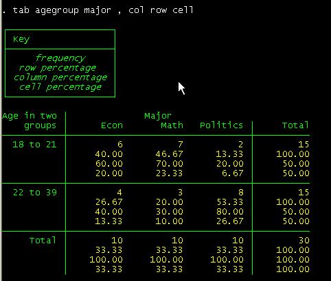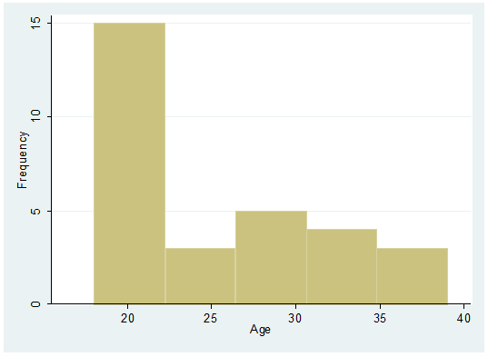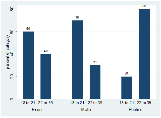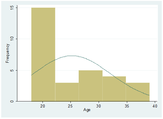 Notice you may have to create the variable "agegroup" which is a recode of "age" where 1 "18 to 21" 2