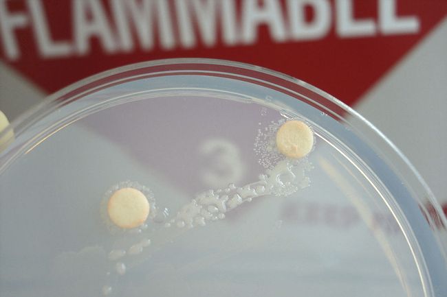 Bacteria cells can grow on an agar plate and form patterns. To do so we engineer these cells with synthetic gene circuits to control the growth in certain direction and under specific conditions. Here you can see two colonies of cells which are grown under the presence of a chemical gradient.
