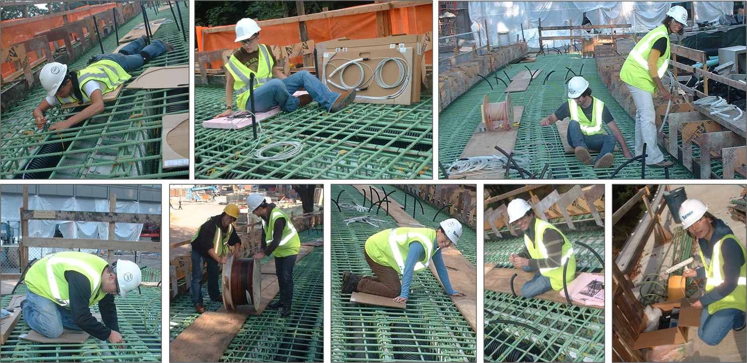 The sensors were embedded in concrete during the construction. Installation was performed by professor Glisic and the following students: