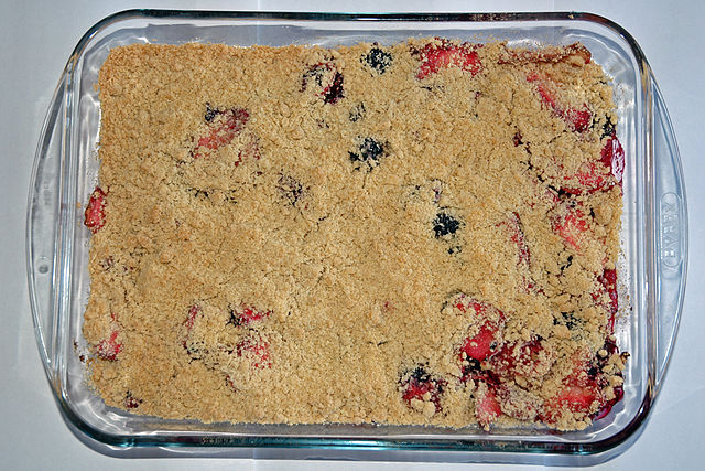 In a large bowl combine berries, ½ cup sugar, and cornstarch; toss to coat. Pour the fruit mixture into a greased baking dish. Top with crumble topping. Bake until top is golden and fruit is bubbly, about 35 minutes. Serve warm.