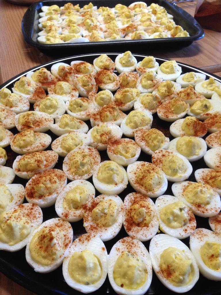 When the eggs are cooked, crack them all around, making sure that the cracks are deep. Ideally the cracks should be deep enough that the shards pierce the membrane of the cooked egg. When in doubt, crack harder. But make sure that the shell remains on the egg.