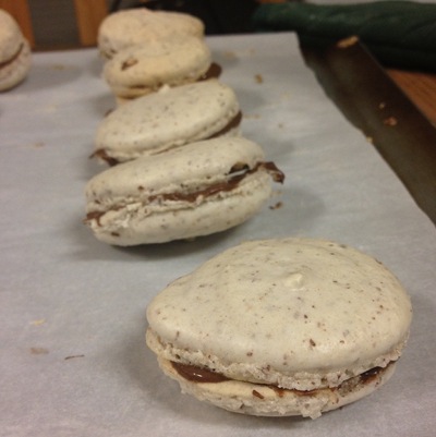 Cover baking sheets with parchment paper and pipe mixture onto paper. Slam baking sheet on a table several times to remove air bubbles. Let set for 10-30 minutes.