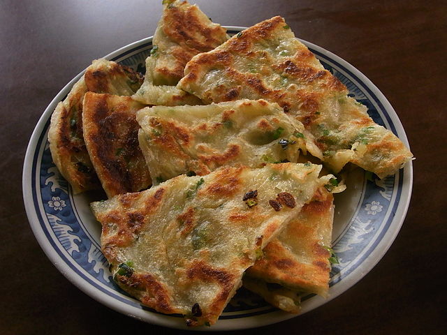 Take out little balls about half the size of a tennis ball and roll it flat. Brush the circle with sesame oil, sprinkle salt, and spread a pinch of scallions.