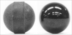 Green-body bearing (left) and sintered bearing (right) after sintering and polishing. The 'belly band' on the green body is a result of the forming technique and must be removed prior to sintering.