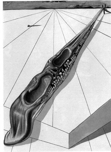 In my Illustrations to Dante's Inferno (Fairleigh Dickinson Press, 1994), I argue a position towards illustration which will perhaps seem too limiting to some: that "closeness to the Dantean text in tone and detail, to his complex attitudes and his descriptions, ... in summary must be the common-sense definition for the good Dantean illustration. " I had in fact argued the case earlier in an article in Bulletin of Research in the Humanities (87:4, 1988), and again in Dante Studies (CXI, 1993), the latter dealing with the iconography of Hell frescoes and paintings in Italy just prior to and in the two centuries after the appearance of Dante's Divine Comedy. I note in the earlier article and in the book that with the rise of Romanticism, and especially with the work of William Blake, the dominant impulse in artists of major talent has been to use the Inferno for one's own artistic purposes, rather than to illustrate (''illustrate'': to light up, to illuminate) the subtleties and complexities of Dante's text and purposes. Both impulses I assert, are laudable, but should not be confused with one another. Recent artists of the stature of Rico Lebrun and Renato Guttuso have managed, as, say, Delacroix managed earlier, to create major art works while creating true illustrations, remaining faithful to profound attitudes in Dante's text. Others, I argue, have not been inclined to the truly illustrative, but to what I have called a "complete personal recasting" of the Inferno to create their own personal, perhaps major, artistic statements. Among these are Salvador Dali and Robert Rauschenberg. I want here only to sketch my reasons for not including these artists in my anthology devoted to illustration of Dante's Inferno. I hope my respect for the work of each will be clear, while at the same time I make equally clear my sense of what the definition of "illustration" ought to encompass. Dali's watercolors for the 100 cantos of the Divine Comedy date from 1951-2 and appeared in a six-volume French edition (1960-4), converted by two master craftsmen (under Dali's supervision) to the process of "color-xylography. " The watercolors are fairly late in Dali's career and often use personal imagery developed in his earlier work, as, for instance, dresser drawers extending out from a torso, an extended buttock held up by a crutch, elongated arms and legs extended into space. Some of the images are visual references to previous Dante illustrators' work (Doré's wood of the Suicides and Geryon, J.A. Koch's snake-entangled Thief, Yan Dargent's Satan) as well as to Picasso and other contemporaries. Dali clearly has his own metaphysic musings and symbology involved in these drawings. The question is, how involved is Dali in illustrating Dante's attitudes and imagery? Dali's drawing for Canto 14 (fig. 1) can, I think, serve as an example of the artist's methodology in the series of drawings. Dante's canto deals in part with the Blasphemers against God, who suffer in Hell under a rain of fire. The major sinner characterized in the canto is Capaneus, who defied the Gods as he scaled the walls of Thebes. He is depicted by Dante as still defiant of God's authority in Hell, refusing to show pain or even admit his circumstances. For this he is despised by Virgil: "Only your own rage/ could be fit torment for your sullen pride. " William Blake found in Capaneus an icon for his own sense of being oppressed by the Christian establishment and so makes of Capaneus a radiant, heroic figure, an illustration not of Dante's Capaneus, but his own. Dali's Capaneus is not in Dante's dark place of raining fire, but in a lighted, geometrical metaphysical space we see often in the artist's work. The enormous tongue with teeth obviously represents the blasphemer's tongue, which has reduced him to a flaccid cripple, upheld by a crutch at one end, and flowing over a boundary at the other. The symbol is simply a meditation on the idea of blasphemy, and could have been created without the Dantean imagery at all, pure Dali. The case is not always as extreme, but there is no question that the enormous zest in Dali for his own symbologies and his own whimsy are the primary driving forces in the Inferno drawings, not a desire truly to illustrate Dante's text. He is not necessarily in disagreement with Dante, as Blake often is, but generally doing his own thing with themes supplied by Dante. Robert Rauschenberg's drawings date from 1959-60 and were published in a limited edition of 300 copies in 1964. Rauschenberg's work of the Fifties were generally semi-abstract, large, colorful, beautifully composed collages of "found" objects or images. The 34 Dante drawings are small, approx. 12" x 15", and are composed of images suggested by Dante's text which are taken from magazines, books, and other print media, and impressed into the drawing by a method of solvent transfer, lighter fluid used to lift the image from its source and rubbed onto the drawing by means of a ballpoint or other stylus. The drawings generally have the brilliant compositional flair and color that viewers find irresistible in Rauschenberg. The question is, however, as with Dali or with Blake (and others): are the drawings illustrations to Dante or from Dante. The latter really should not be called illustrations. Rauschenberg's drawing for Canto 31 (fig. 2) attempts, as do all of his Dante drawings, to "scan" the given canto, as the artist creates images suggested by the text, operating generally by association and analogy, disposing the images on the page working from top to bottom with the compositional instincts that are certainly Rauschenberg's forte. Most images are rather bold and clear in the Canto 31 drawing; in many other Canto drawings the images are so submerged in the texture of the drawing as to be unrecognizable without great concentration and study, a process which soon becomes tedious. The difficulty suggests that Rauschenberg expects the viewer generally to appr