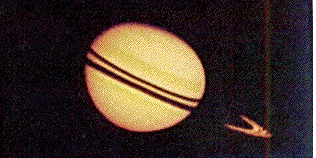 | Since we know that the planet Saturn has rings, we can infer them from a photograph of the planet that the shapes we see are the rings. | ![]() |