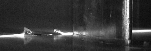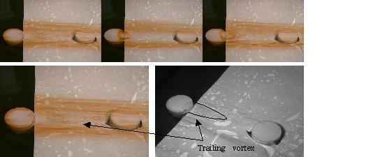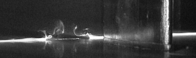 The development of low order models to describe flows over wavy surfaces has opened the way for the development of meaningful control strategies based around distributed surface mounted actuators. In the image shown below an actuator has been placed in a water channel and activated. The flow visualization images show the formation of a transient trailing pair behind the actuator that may be then utilized to modify the formation of "streaks" in the boundary layer.