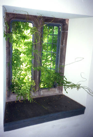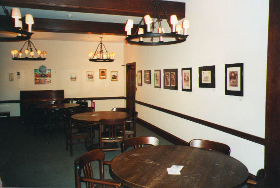 In entryway 12, there is a suite of two rooms that will still be known to many alumni as the Breakfast Room. Continental breakfast is now served in Procter Hall. The Breakfast Room has become known among current students as the Coffee House, a low-key social hangout and study space staffed daily during the semester from 9 p.m. to 12 midnight. It the setting for occasional concerts or literary readings, and it serves as a gallery to showcase graduate student art work. This picture shows artwork from the Metamorphosis exhibition by Elena Peteva.