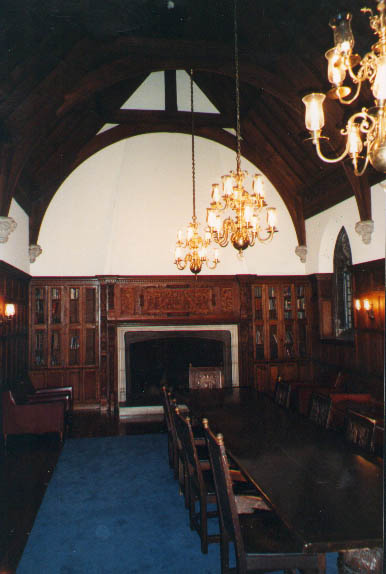 Van Dyke Library is another popular study space. A lovely room with one of the largest, most intricately adorned fire places, the stone capitals on which the ceiling beams rest sport owl and curiously lamb-faced bats.