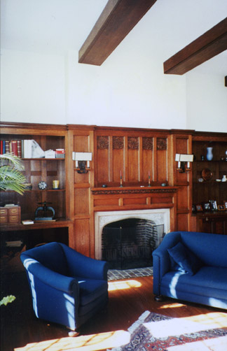 One cannot but enjoy the fine masonry work and wood carving around the fire place in the living room of Pyne Tower Suite. About once a month, this room is the setting for a reception prior to the traditional High Table which brings together distinguished guest speakers, faculty members, administrators, and students in a casual intellectual setting.