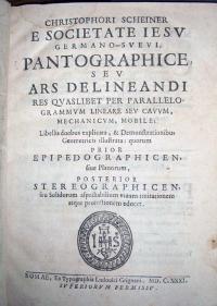 Christopher Scheiner, a German Jesuit, was responsible for designing and building the first pantograph in 1603. An illustration of the device can be seen in his 1630 book, Rosa ursina Sive Sol, along with other instruments he invented including a refracting telescope. The following year, Scheiner published a manual on the construction and use of the device, entitled Pantographice, seen here.