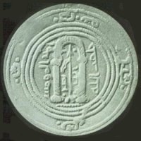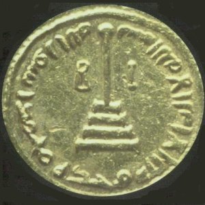 Arab-Byzantine gold coin, 2nd cent.; Early Umayyad-Arab coin, late 7th cent. (American Numismatic Society)