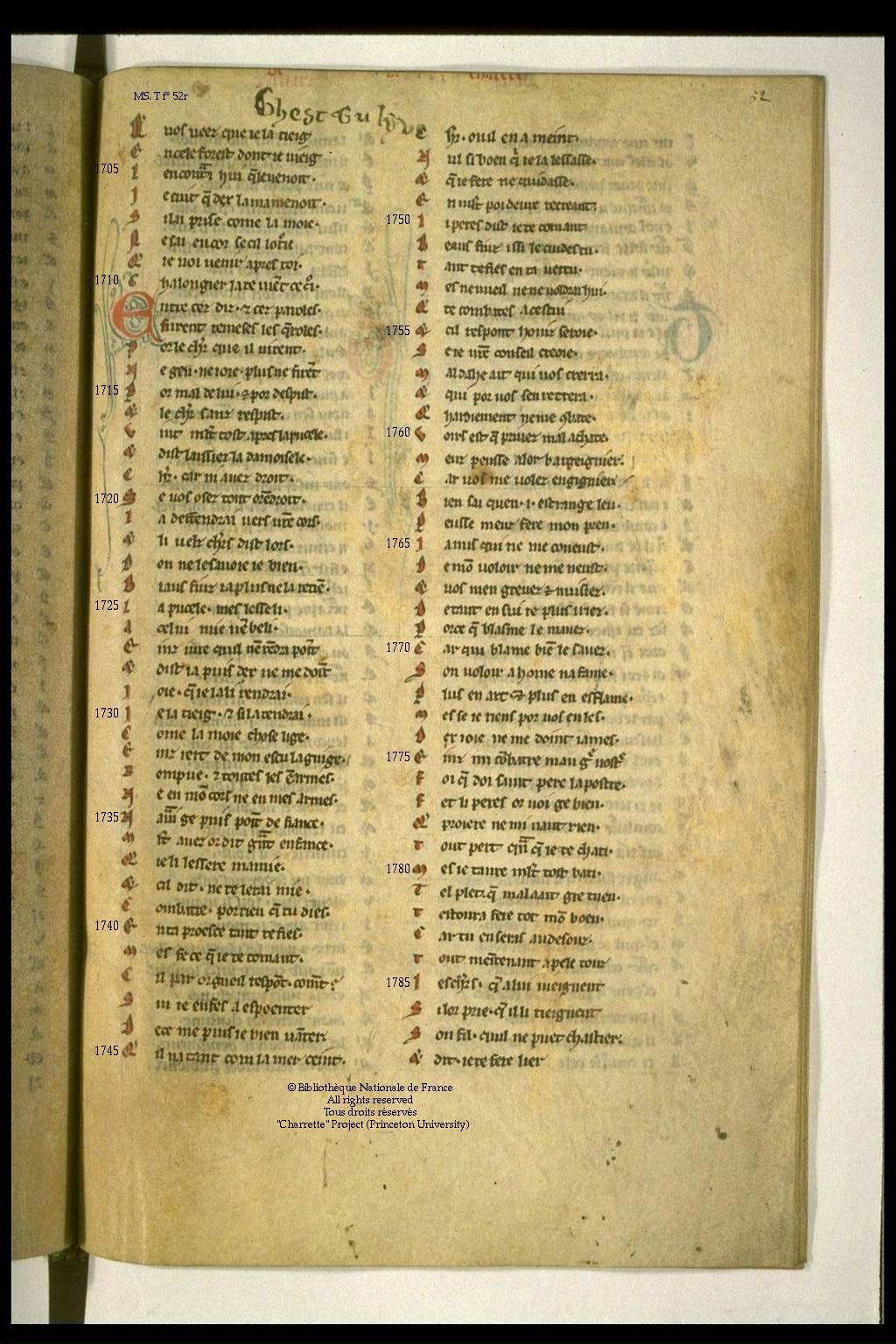 - MS T = Paris, Bibliothèque Nationale de France, f. fr. 12560