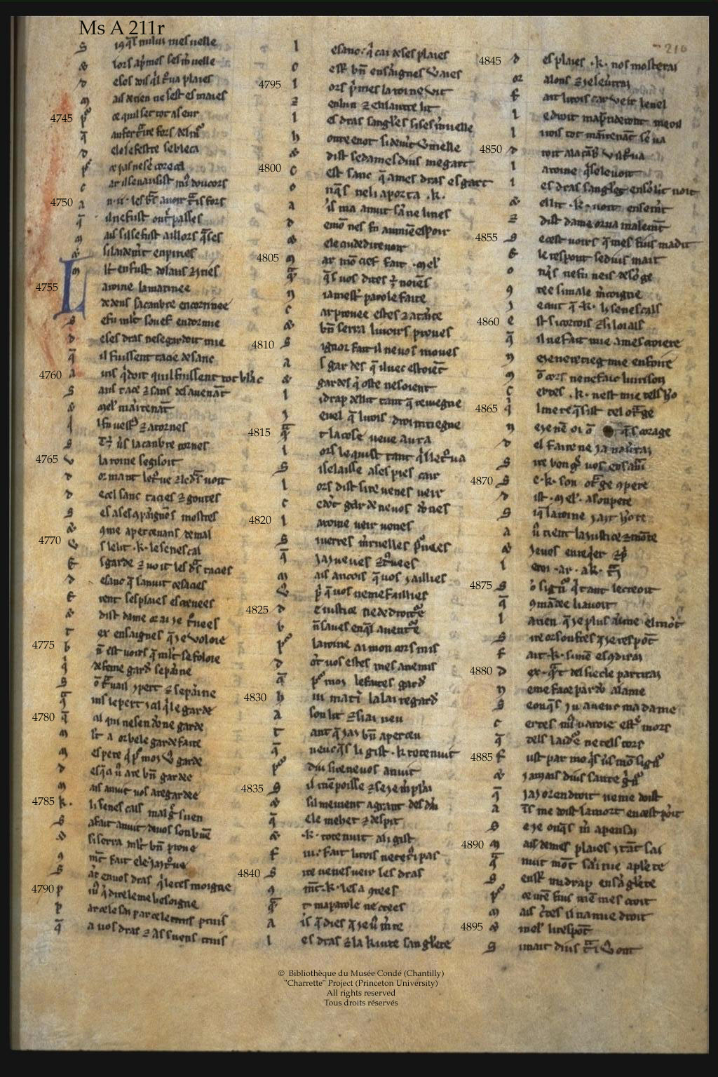 - MS A = Chantilly, Musée Condé 472