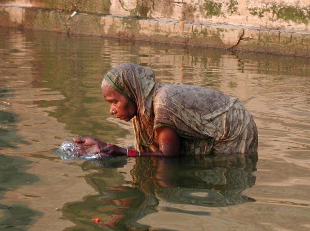 This woman is drinking from the holy river.