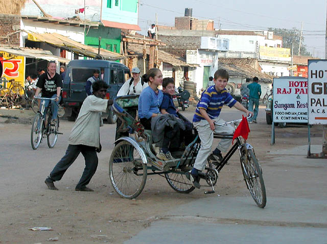 The rickshaw is the standard form of transportation across most of India. Here is Ari transporting Max and Rebecca. During our 8 month trip, Ari smiled his way into conductor's seats of rickshaws, trishaws, becaks, horse and buggies, ox carts, and even a 100 foot long ferry.
