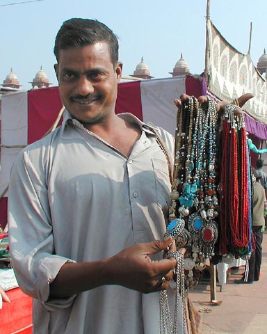 "Hello my friend. Would you like to buy these precious jewels?" Throughout the Third World, there are men like this one outside the Taj Mahal, trying to sell you