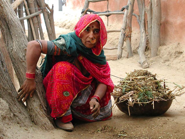 You can tell that this woman is the head matron of her tribe by the identifying nose ring. She is gathering scarce wood to start a fire to cook dinner for her family.