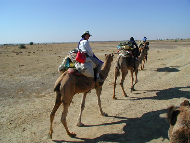 The northwest corner of India, near the border with Pakistan, is a vast, nearly empty desert. We hired a guide and some camels to take us on a trek into this remote land. During the middle of the day, the temperature soared into the high 90's, and there was no respite from the sun.