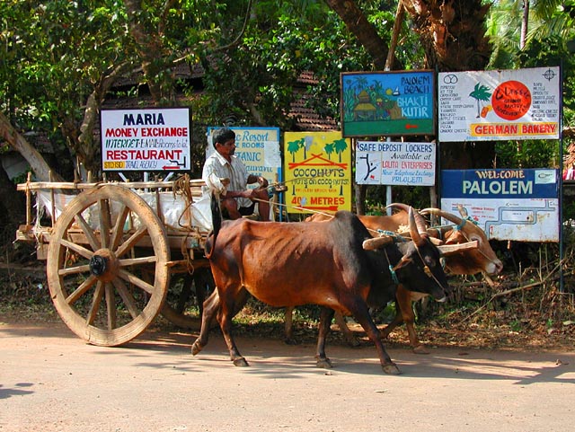 We spent a relaxing four days in Portuguese state of Goa (India didn't take control of this state until 1961). The ox cart in the photo is going past the signs indicating the various establishments in the beach town of Palolem. We stayed at the Cocohuts hotel advertised behind the oxen, which you can see in the photo below.