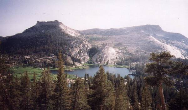 Upper Cathedral Lake from the slopes of Cathedral Peak