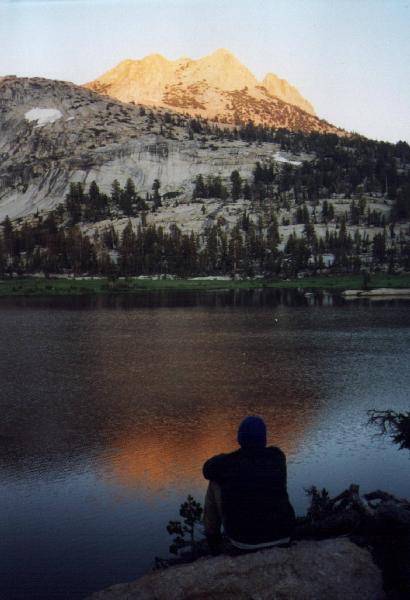 Last bit of sun on Echo Peaks with Dean and Upper Cathedral Lake