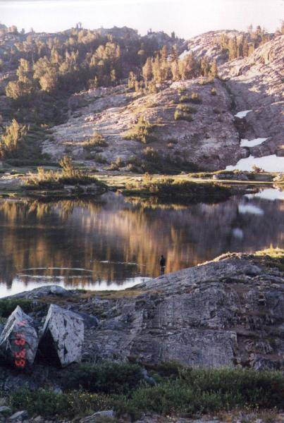 Dean fishing in Thousand Island Lake in the early morning