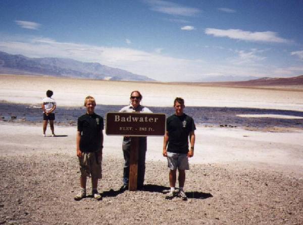 Thomas, Dad and Dean at Badwater, the lowest point in the country