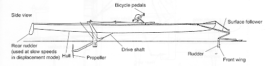 skin-friction drag. The Hydro-ped shown, a kayak hull that has been modified
