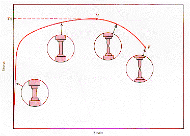 contracting laterally as it extends longitudinally. · From the yield stress to the UTS,