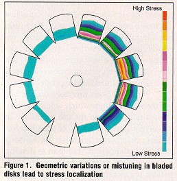 blades due to resonance coupling. The stress amplitude is seen to be highest