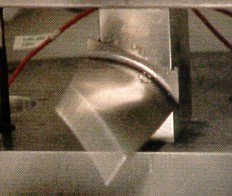 The bottom photograph shows a single blade subjected to a vibration test at the blades natural frequency. This blade is from the fourth stage of the compressor spool in an F100-220 engine. The relatively high amplitude of the blade tip is indicated by the 'blur' region of the photograph. Surface modification methods such as laser shock peaning help to improve fatigue performance. From: AFRL Technology Horizons, December 2001 |