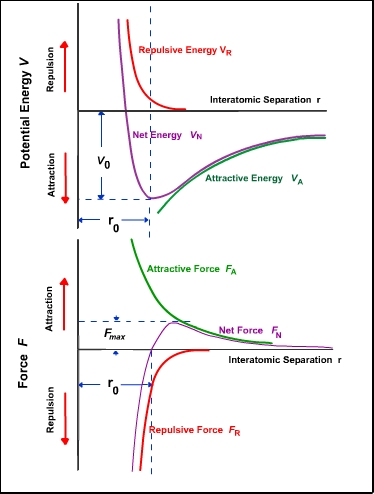 F(r) = - (dV(r)/dr) Click on the equation above to display the force curve. Use the active equation below to see the components of the force. F(r) = -(nA/rn+1)+(mB/rm+1)