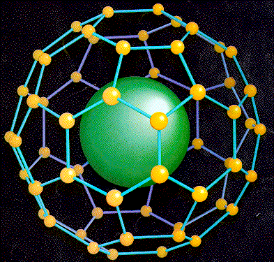 one shown has a potassium atom in the center of the carbon cage, but empty