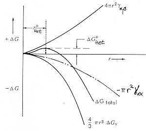 for the Probability of ΔGhet*: PHet= exp {- ΔGhet*(T)/ kT} · The lower value of ΔG* for heterogeneous nucleation, exponentially favors this nucleation process over homogeneous nucleation. |