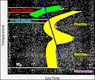 (0.2wt%) to the Fe/C alloy shifts the "nose" of the CCT curve to lower