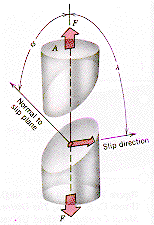 a crystal, initial slip takes place on a particular slip plane in a particular