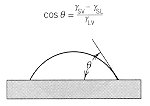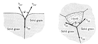 wetting for a liquid on a solid surface, and the angle between grain boundaries