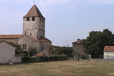Village of Marillac, Charente, southwest France. The Roman Church dates from the 12th Century and our living quarters are in the stone house just to the right of the church. | |