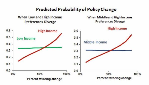 There are, he said, certain beneficial circumstances—such as an evenly split Congress—which can increase government's responsiveness to middle class preferences. However, even in those circumstances, "the middle class never do as well as the affluent, and the poor never do as well as the middle class."