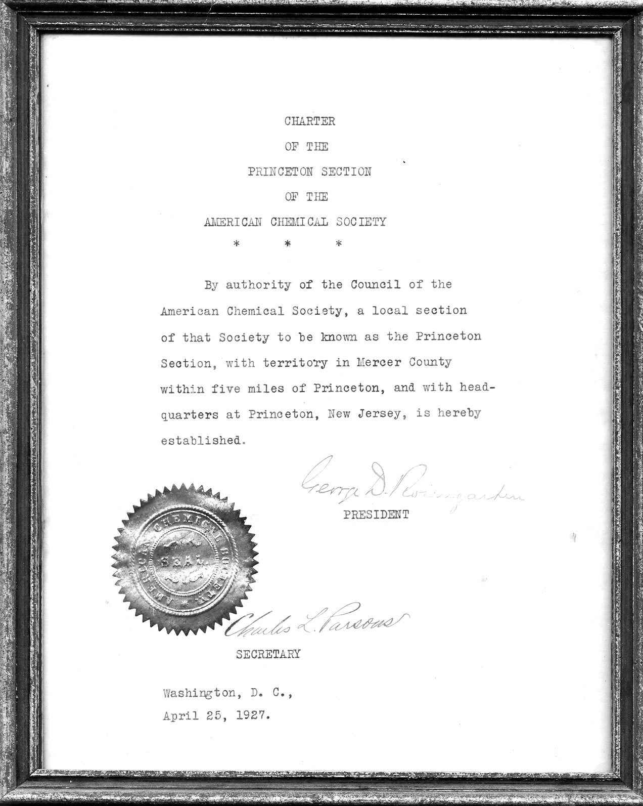 Princeton ACS Local Section, founded on April 25, 1927, dedicated a display cabinet in the Princeton University Chemistry