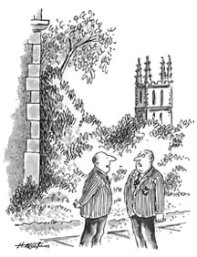 Even people who buy the New Yorker for its articles have to admit that when the magazine arrives, they first flip through to find the cartoons. For 45 years, cartoonist Henry Martin 48 drew many of those cartoons occasionally with Princeton and Reunions themes as well as illustrations for such national magazines as the Saturday Evening Post, Look, and Ladies Home Journal. For many years, he also drew a single-panel comic strip, Good News/Bad News, which ran in newspapers around the country. After graduating from Princeton with a degree in art history, Martin went to art school in Chicago with the blessing of his father, a businessman, who understood that I probably wouldnt make it too well in the business world. With little homework and a lot of free time, Martin began to send unsolicited sketches used as filler to magazines. For nine months he received nothing but rejection slips, until April 1950, when the New Yorker bought a tiny pen-and-ink sketch of a circus wagon for $20. Though Martin continued to sell the occasional drawing, he supported himself and his family by taking a variety of art jobs, such as painting a mural on the wall of a Princeton gourmet shop. Ten years later, Martin sold his first cartoon to the New Yorker, and he focused his career in that direction. I decided to give cartooning five years and if that didnt work out I was going to God forbid get a job and go into business or something, Martin says. By the end of those five years, Martin was selling cartoons regularly to national magazines. Martin who is now retired, though he continues to draw cartoons for PAW says he always approached his job with discipline. He would arrive at his office on William Street in Princeton by 9 a.m. Mornings would be set aside for creative work; he would brainstorm and sketch at least five new ideas each day. After lunch, which sometimes included an informal cartoonists round table with local artists at the Annex, Martin spent his afternoons handling business correspondence. Wednesdays were always rounds day, when Martin would travel to Manhattan to visit magazines to try to sell some of his cartoons. He and other cartoonists would sit with their portfolios in the New Yorkers reception room and wait to be called by the art editor. Then they would watch nervously while the editor went through their weeks work. Occasionally, the New Yorker would ask Martin to tweak a cartoon, and he would change a word here or a facial expression there. I learned early on that a good editor can help you and you get all the credit, he laughs. He remembers one occasion, however, when the editorial process was more intimidating. The art editor, Martin recalls, got through with one of my cartoons and he didnt say anything. And I asked, Are there any changes? He looked up and said, Make it funnier. Martin insists that his jokes are better than his art. Getting the ideas was the most fun for me, he says. He describes a good cartoon as a marriage of a good idea and a good drawing. A good idea can survive with a poor drawing, but not vice versa. The gentle, genial Martin draws mostly gentle people, many transparently upper-class and Ivy-educated, musing on the absurdities of this or that. Many of his beloved cartoons are set at Reunions, and of course a better theater of the absurd could hardly be found. In one, two paunchy, middle-aged men, both clad in ridiculous costumes, confront each other in a courtyard. In a flash of recognition that strips away the years, they call each other by their old nicknames: Spooky! Flat Top! The appeal of Martins work lies in its simplicity, its universality,