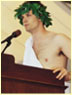 Bradley, a classics major, unveiled his toga and addressed his classmates