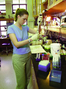 14, Diane Nuttall '02 was finishing up her summer's work in President