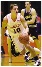 shorts I came here to compete, said Harris, a seven-time heptagonal champion. I knew if I did what I had to, it wouldnt matter who I was up against. Harriss winning jump broke his own Princeton record, which he set earlier this year. He is a three-time all-America at the 1998, 1999, and 2001 outdoor championships. Tora is a great NCAA champion, an unbelievable athlete, and a wonderful representative of Princeton, said head coach Fred Samara, who earned the NCAA Regional Coach of the Year Award this season. Hes worked so hard for four years, and now hes achieved this. The only other Tiger at the 2002 NCAA championships, Josh McCaughey 04, earned his second all-America selection by placing ninth in the 35-pound weight throw with a distance of 20.56 meters. In a matter of seconds, the 200102 Princeton mens basketball team went from pure adulation to total lamentation in the first round of the NIT on March 12. The host Louisville Cardinals snatched a 6665 win on a basket in the closing seconds of the postseason thrill ride. (Photo of Ed Persia 04 by frank wojciechowski) The Tigers, who were down by 10 with six minutes left in the game, shot the lights out in the second half from three-point range, connecting on 8 of 13 to take the lead with less than 12 seconds left in the nationally televised game. Ed Persia 04, who hit three straight shots from behind the arc in the final six minutes, and Mike Bechtold 02, who finished his Princeton career with a game-high 24 points, led the late-game surge. Left with no timeouts and 5.3 seconds on the clock, Princeton got the ball to senior Ahmed El-Nokali, whose final shot in a Tiger uniform hit the front of the rim as time ran out. Princeton (1612, 113) finished the season with a share of the Ivy League title and its seventh-straight postseason berth. Leading scorer Theresa Sherry 04 carried womens lacrosse to a 106 win over Loyola in Baltimore on March 10. Sherry scored three goals and assisted on two others as Princeton improved to 21. The Tigers defeated Lafayette 187 at home last week. The teams difficult opening schedule does not get any easier as they faced Virginia at home on March 17. The Tigers were ranked third in the March 12 Intercollegiate Womens Lacrosse Association poll. Duke leads the poll, followed by Georgetown, which beat Princeton in the season opener. The road woes continued for the defending NCAA mens lacrosse champions as they fell to sixth-ranked Virginia 1311 on March 9. The Tigers have not won in Virginia since 1994. They opened the season with a loss at Johns Hopkins. The Tigers played their home opener on March 16 against Hofstra. The season closed out earlier than anticipated for womens hockey against Harvard, and a late-season flourish for the mens squad was cut short at Rensselaer. On the womens side, the Tigers (15113) had the benefit of home ice against Harvard (18102) but were swept in the first round of the ECAC playoffs. Harvard came back to win the first game 32 and ended the Tigers season with a 31 win on March 9. Princeton goalie Megan Van Beusekom 04 stopped 78 Crimson shots, earning her ECAC Goalie of the Week honors for the fourth time this season. Her .920 save percentage this year is tops for a single season in Princeton womens hockey history. The mens hockey team (11172) traveled to Troy, New