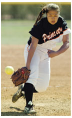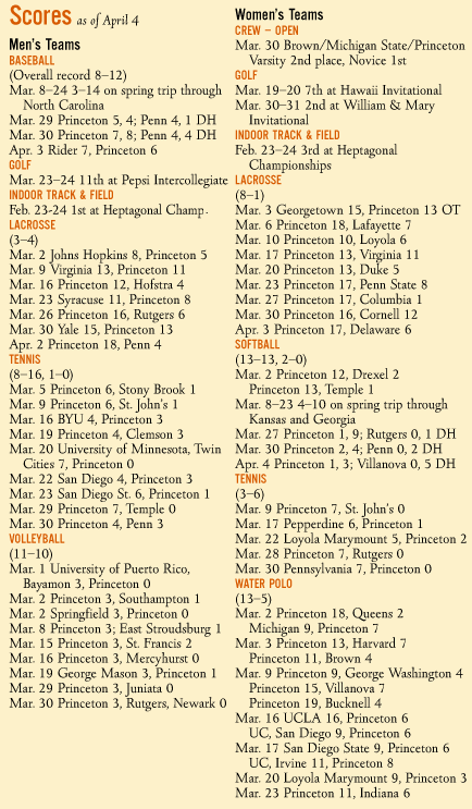Princeton softball coach Maureen Davies 97s playing years with the Tiger nine were filled with three Ivy titles, three appearances in the NCAA regional playoffs, and two trips to the big dance in the Womens College World Series. This season, the second-year coach thinks her Tigers are good enough to get a taste of some of that success themselves, beginning with a legitimate shot at the league title. Harvard and defending champion Cornell were the favorites heading into the conference schedule. Princeton finished fourth last year with an 86 league mark, 2019 overall. I think we can do it this year, said Davies, whose team carried a 1212 (20 Ivy) record as of press time. As a team I believe they are starting to see and believe in their potential to do very well. A lot of times its more than your talent on paper, and on the field, its your heart and belief that will take you far. The Tigers opened their season with wins over Drexel and Temple before heading to Kansas and Georgia for tournaments and their annual spring trip. They split four games in Kansas, but took their lumps in the Peach State, going 410 on the trip against several nationally ranked teams, including Florida State, Georgia, Georgia Tech, and Ohio State. But its all part of the plan, according to Davies. Weve talked about it from the very beginning of the season, she said. We know we go down South a little disadvantaged since those teams have already played 25 games. But we need to play the best teams to get ourselves prepared for the rest of the season, and our players accept that challenge. They know its going to make us a better team. The Tigers return one of the Ivy Leagues top players in pitcher/first baseman Brie Galicinao 02, who last year became the first player in Ivy history to be honored as both Player and Pitcher of the Year in the same season. Through the first 22 games this season, Galicinao leads the team with 27 hits while batting .360. On the mound, shes 33 and notched 10 strikeouts in a loss to 20th-ranked Florida State. She has a lot of pressure because she had such a great season