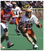 After a 1513 loss to Yale on March 30 Princetons first Ivy League loss since 1995 the defending mens lacrosse national champions could miss out on the postseason unless they sweep their last four Ivy League games. The Tigers also dropped out of the top 10 in national polls for the first time since 1990. The team finds itself in such an unaccustomed position not only because of the Yale defeat, but also because of March losses to Johns Hopkins, Syracuse, and the University of Virginia. In its season-opening 85 loss to Hopkins on March 2, Princeton was atypically lethargic. After the game, head coach Bill Tierney questioned his teams effort. It wasnt until the clock was running down that we played harder and we played better, he said. The offense did improve in a 1311 loss at Virginia on March 9 and an 118 loss to Syracuse on March 23. Still, said creaseman B. J. Prager 02, Offensively, we havent been able to achieve the same type of chemistry that we had last season. The loss of Matt Striebel 01 has been especially hard on the team because he was such a versatile player. With Striebel gone, defenses have been able to focus on Ryan Boyle 04, who runs Princetons attack from behind the cage. In response, Tierney has given more responsibility to Matt Trevenen 03, like Striebel a former attackman moved to midfield. Against Hofstra, Trevenen had two assists, and he scored three goals and an assist against Syracuse. All three of those feeds went to Prager, who scored four times against Hofstra on March 16, a 124 Tiger win. Princetons defense, which returned most of its top players, hasnt been as dominant as it was in 2001. That reflects the loss of first-team All-Americans Ryan Mollett 01, who anchored the defense last year, and goalie Trevor Tierney 01. Despite its early defeats, Princetons season isnt a lost