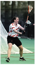 the verge of a national titleIvy champion womens lacrosse retains top ranking with win over Maryland By Paul Hagar 91 Photo: Theresa Sherry 04 and her 37 goals are a major part of the Tigers success. (Beverly Schaefer) In late April, Princetons womens lacrosse team (141, 60 Ivy) was perched atop the national rankings and driving pell-mell into the postseason with a tank full of confidence. On the brink of the NCAA tournament, the Tigers won a second consecutive Ivy title with a 153 drubbing of Dartmouth on April 20, then came back from a five-goal deficit to beat defending national champ Maryland 139 on April 24 for their 14th straight win. While Coach Chris Sailer and her team should be able to see the Final Four from here, the Tigers have maintained a deliberately myopic perspective. This year weve taken a different tack, says Sailer, who has a .739 winning percentage in 15 years at Princeton. Rather than talking about specific goals such as an Ivy League title or a strong performance in the tournament, the team is focusing more on us and preparing to play our game. Thats not to say the Tigers dont have goals. They reached the first one by winning the Ivy title. This season, the teams chances of achieving its next goal a national championship look as good as they ever have. The Tigers boast a host of experienced players, and perennial winner Maryland, which has held the national title since Princeton won its only championship in 1994, appears vulnerable. Reaching the May 19 title game will prove difficult, but its a measure of the teams character that it has made the key to getting there very simple: No letdown. For us to be successful, we think we just need to continue to play hard and play together, says one of the Tigers defensive stars, Rachael Becker 03. Being number one is nice, but this season, theres little difference in the top five teams. We were beaten by Georgetown, whos number two, and they were beaten by Virginia, whos just behind them. Offensive star Lauren Simone 02 is less reserved. Its nice to feel like a number one after beating Maryland, she admits. They have ended our season for the last couple of years. In 2000, they beat us in the championship game, and last year, it was in the semifinals. But like Becker, Simone is focused on an approach that goes back to basics: We just work from game to game, making sure we work harder than the other team in the game were playing, and fixing what we could have done better the previous game. Both Becker and Simone are candidates for the Tewaaraton Trophy, given to the top male and female lacrosse players in the nation. Princetons style of play is as straightforward as its philosophy. On offense, the team seeks to control the tempo of the game, using passing and speed to set up shots from close range. The strategy has proven highly successful: For the first time ever the Tigers have scored in double digits every game. On defense, the team employs two schemes a one-on-one, sagging defense to protect the arc in front of the net, and a high-pressure style that features double-teams to force turnovers. The combination has enabled Princeton to establish an amazing average margin of victory of 7.57 goals per game. The Tigers win against Maryland after falling behind 50