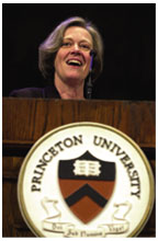 Photo: In her second annual open forum at Reunions, President Tilghman talked with alumni about a range of issues affecting the university. (Robert Sciarrino)