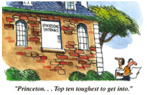 Outside magazine: Smart and healthy In another new ranking, Outside editors this fall ranked Princeton 35th in its listing of the 40 Coolest Places to Work, Play, Study, Party, and Live. In the top slots were the University of California at Santa Cruz and the University of Colorado at Boulder, with Dartmouth, Cornell, and Stanford coming in at seventh, 14th, and 17th places. Outsides crew of undergrad reporters scoured hundreds of colleges in search of the 40 schools that turn out smart grads with top-notch academic credentials, a healthy environmental ethos, and an A+ sense of adventure. Princeton was cited for its offerings for rowers, cyclists, and runners; its relative (70 miles) proximity to the Delaware Water Gap National Recreation Area; and the work of the Princeton Environmental Institute. World o Squirrels: Critters just average Also vying for attention among the outdoor rankings is Jons World o Squirrels, an online site (www.gottshall. com/squirrels/campsq.htm) that gives Princeton a three-squirrel ranking, out of five, for the black squirrels in which Princetonians take pride. (Alas, they are merely a different color type of the plain old eastern gray squirrel.) Five-squirrel leaders include the University of California at Berkeley, which was lauded for lush landscaping, and the U.S. Naval Academy. The Princeton entry includes this observation from a field observer identified as Scrappyo: Most of them arent as friendly as Penn States squirrels, but they are everywhere and most of them will beg. ePodunk: Location, location ePodunk, a demographics and travel information company (www.epodunk.com/top10/colleges/index.html), recently named Princeton, New Jersey, the second best college town after Hanover, New Hampshire. Dont confuse that with best college location the company has separate rankings for big, medium-sized, and small cities, where Boston/Cambridge; Columbia, South Carolina; and Charlottesville, Virginia, respectively, placed on top. Creators of the site were looking for towns that have a spark that comes not only from young blood, but from jazz clubs, literary events, bookstores, and cafés, and balanced tradition with new business growth. Princeton, charming but expensive, was cited for tree-lined streets, upscale shops, support for the public library, and preservation of historic sites, as well as for low unemployment and high per-capita income. New Haven got special points for its arts scene, and was ninth among medium-sized cities. College Ranking Service: Do it yourself A spoof on the other rankings, the College Ranking Service, at www.rankyourcollege.com, parodies U.S. News with a system that heavily weights institutional wealth. (A second ranking on the site, listed according to the Fairness Method, is designed to give all colleges and universities the opportunity to be top-ranked.) The order changes every time you refresh your browser, but Princeton, naturally, often tops the list. All were doing is what U.S. News & World Report does